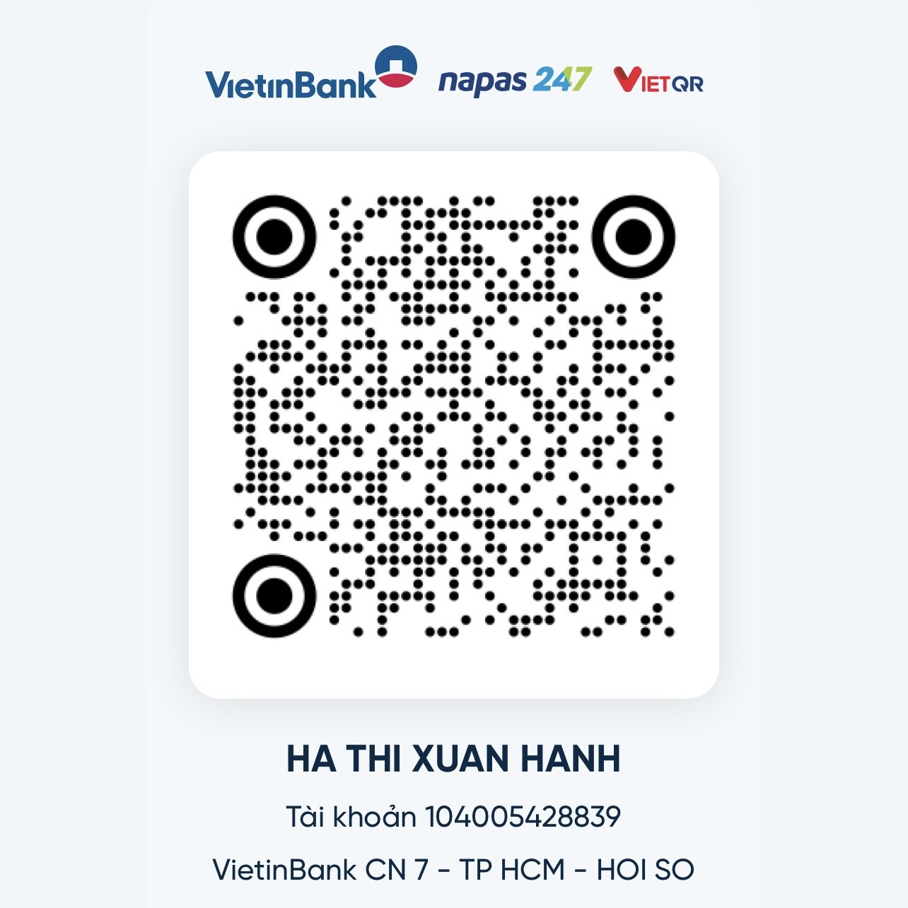 Chủ tài khoản: Hà Thị Xuân Hạnh.